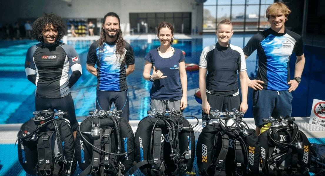 Kurz probíhá v bezpečném prostředí Deepspotu a zaměřuje se na rozvoj klíčových kompetencí, jako je trim, vztlak, komunikace a konfigurace vybavení.